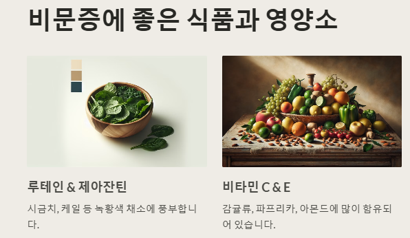 비문증 완화에 도움이 되는 대표적인 식품과 영양소는 다음과 같습니다.