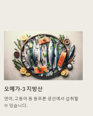 - 오메가-3 지방산: 연어, 고등어 등 등푸른 생선
