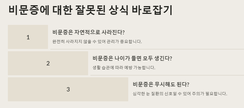 ❌ 비문증은 나이가 들면 모두 생긴다? → 생활 습관에 따라 예방 가능합니다.