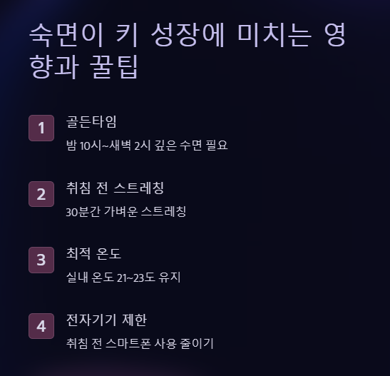 ✅ 밤 10시~새벽 2시에 숙면을 취해야 키 성장에 유리합니다.