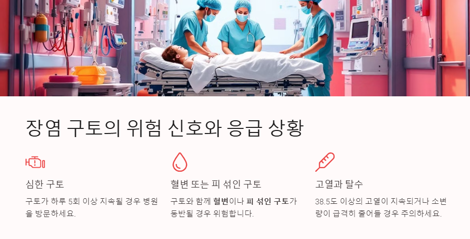 장염으로 인한 구토가 다음과 같은 상황에 해당할 경우 신속하게 병원을 방문해야 합니다.