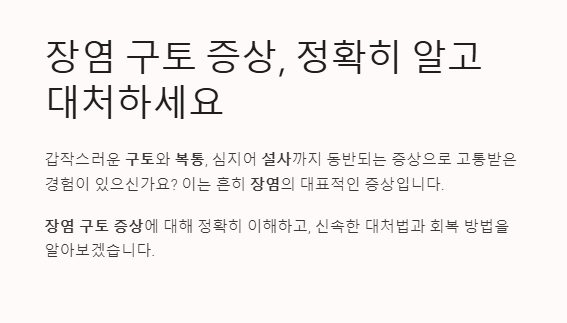 이번 글에서는 장염 구토 증상에 대해 정확히 이해하고, 신속한 대처법과 회복 방법을 알아보겠습니다.