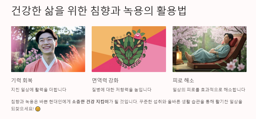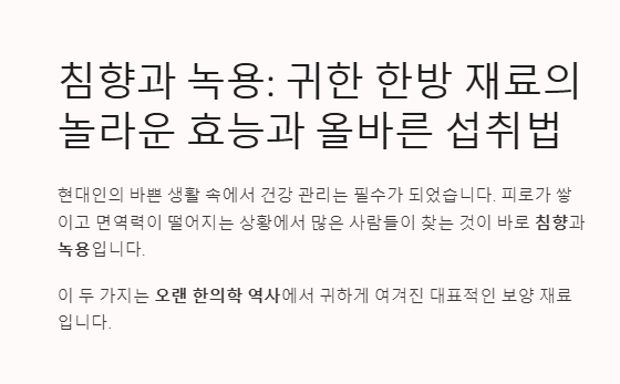 현대인의 바쁜 생활 속에서 건강 관리는 필수가 되었습니다. 피로가 쌓이고 면역력이 떨어지는 상황에서 많은 사람들이 찾는 것이 바로 침향과 녹용입니다.